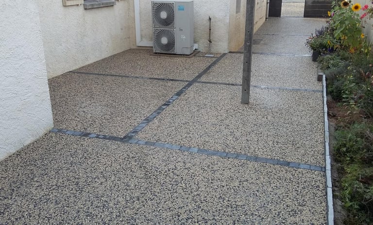 Nos services de terrassement préparent votre terrain pour des constructions solides et durables. (Exemple : Béton désactivé)
